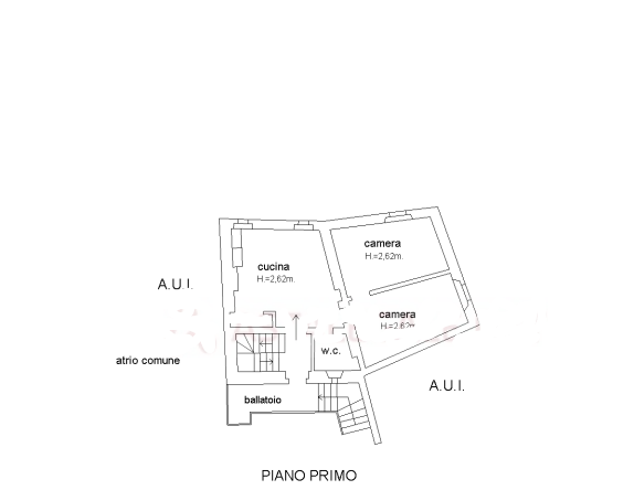 Ubicata al primo piano con accesso da vano scala e ballatoio comune, composta da cucina, due vani e un bagno.