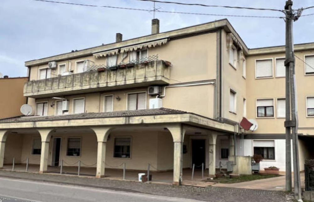 Appartamento al piano terra con annesso posto auto coperto e cantina situato a Tribano (PD) in via Mazzini, composto da un ingresso, un soggiorno con angolo cottura, due camere da letto, un servizio igienico e disimpegno.