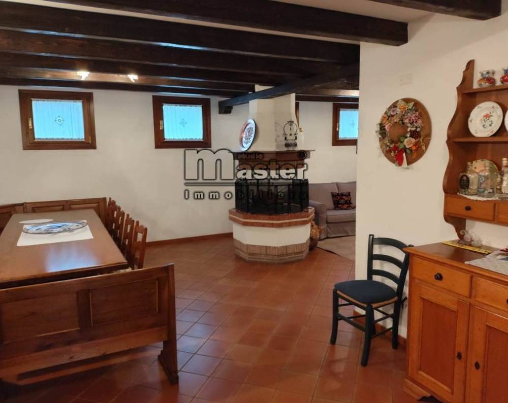 Il piano terra ospita una spaziosa taverna di ampia metratura completa di caminetto centrale (larin), perfetta per preparare cene in famiglia e con amici, un'altra stanza ideale come studio per chi lavora da casa, un comodo ripostiglio, un wc, e l'atrio che si affaccia nel bel portico di 25mq., mentre al piano interrato si trova un ampio magazzino, una spaziosa cantina ed una pratica lavanderia.