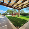 La villa si sviluppa su un lotto complessivo di circa 3.500mq in parte destinato a terrazzo scoperto e giardino privato curato e ben tenuto, in parte ad area di manovra. L'area esterna, che offre uno spazio verde dove poter trascorrere piacevoli momenti all'aria aperta, ospita una piscina, tre porticati, un corpo di fabbrica adibito a locale tecnico, un altro corpo di fabbrica adibito a dependance costituito da ingresso, soggiorno, bagno e sala tv.