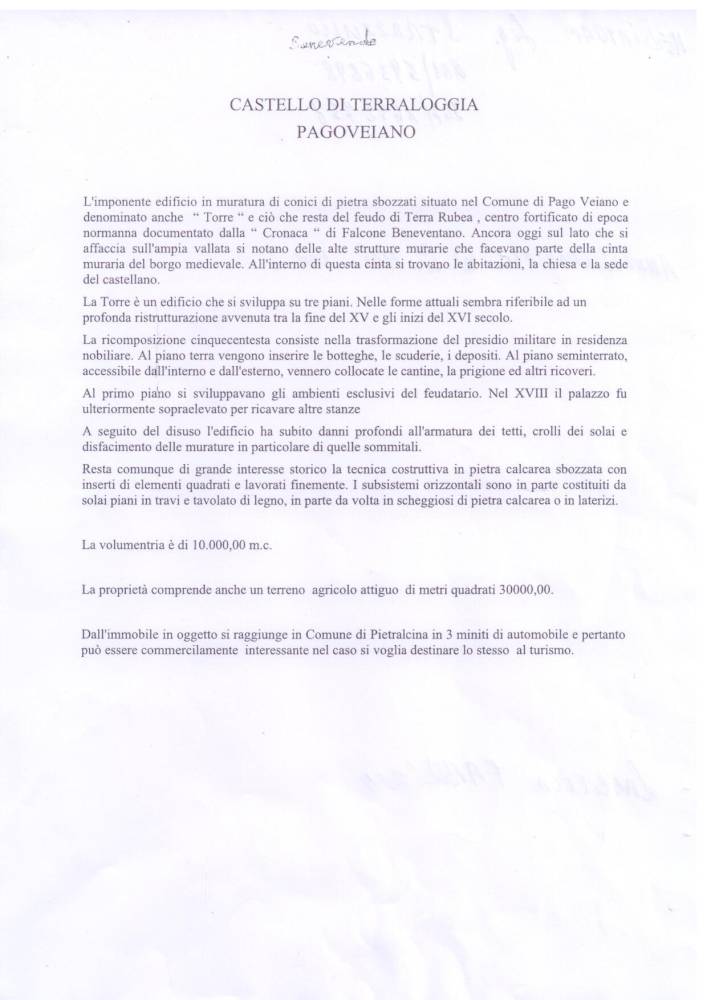 Proponiamo in vendita intero BORGO di antichissima provenienza avente grande valore storico, noto con il nome di "Castello di Terraloggia", situato nelle colline a ridosso del Santuario di Padre Pio, in territorio di Pago Veiano - Benevento.