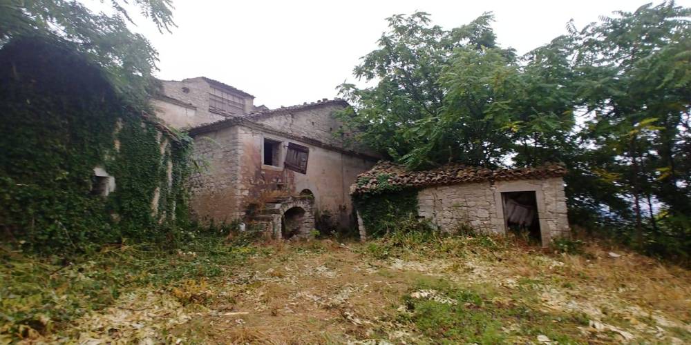 COMPLESSO COLONICO DIROCCATO IN VENDITA CON ANNESSI 9 ETTARI DI TERRENO.