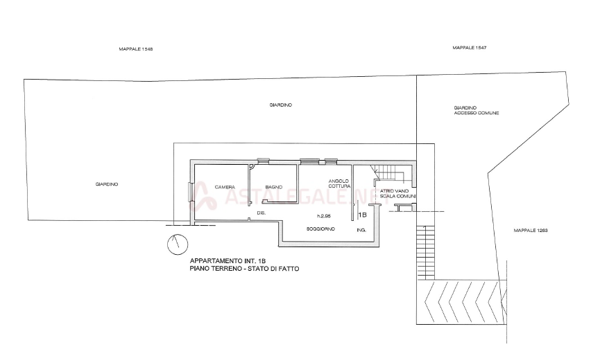 Appartamento in villa posto al piano terreno, distinto con il numero interno 1B, composto da piccolo locale di ingresso  corridoio, soggiorno con angolo cottura, disimpegno, una camera e bagno, per una superficie commerciale di circa mq 56, con circostante ampio giardino di pertinenza esclusiva.