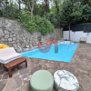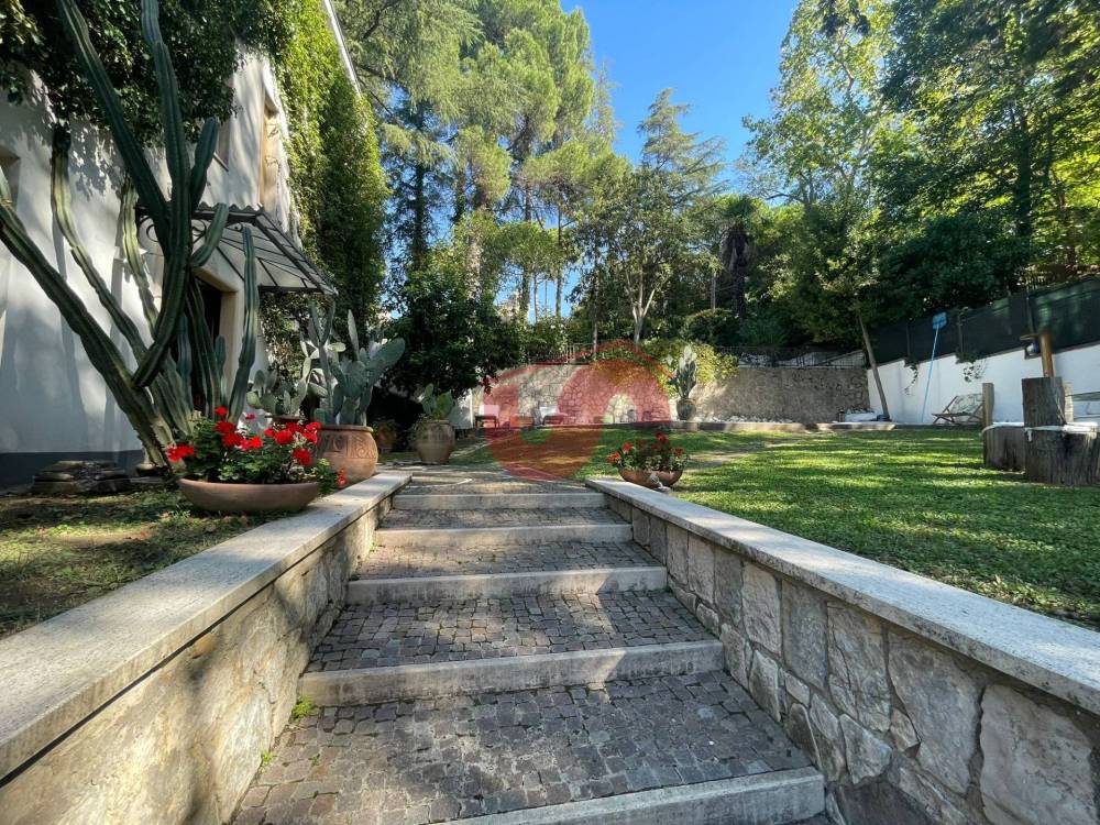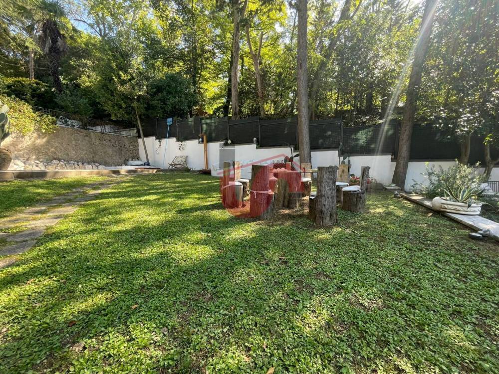 L'imponente giardino allinglese, di circa 3.000 mq è curato ed arricchito da alberi di alto fusto e da alberi da frutto, qui troviamo un ampia piscina idromassaggio (costruita nel 2020) ed un garage di circa 40 mq.