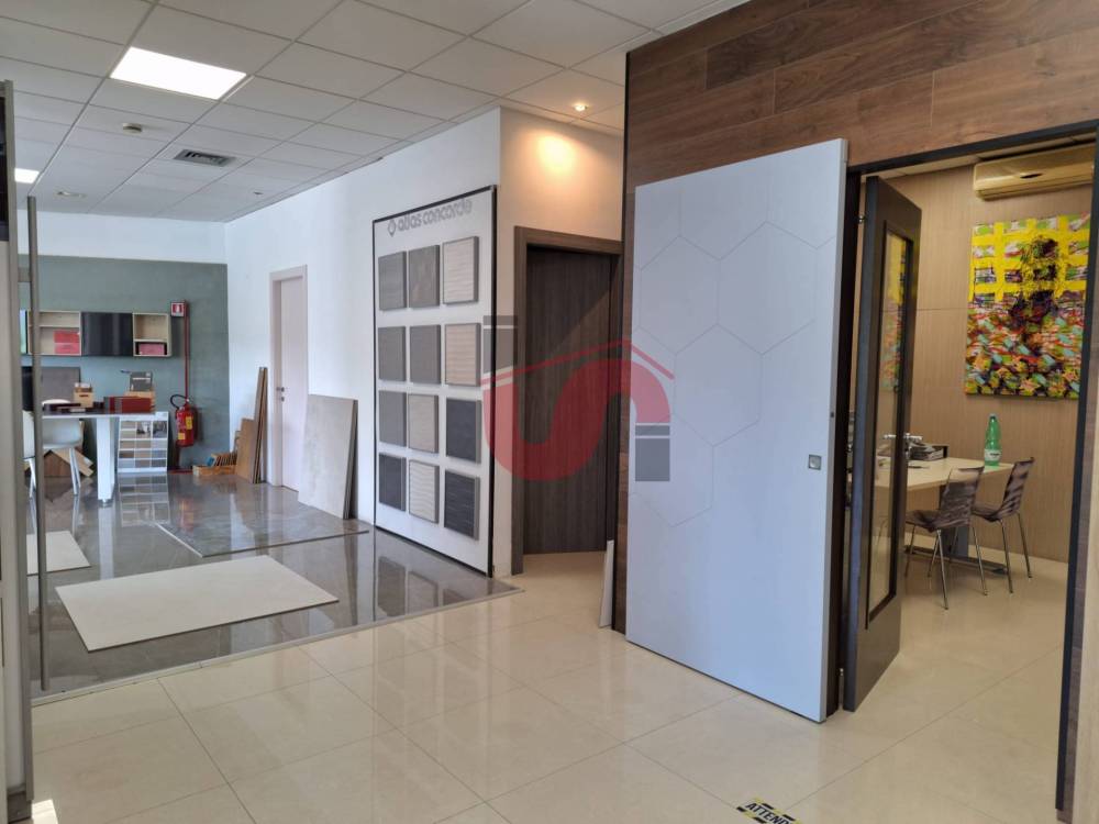 Il corpo di fabbrica antistante, ricostruito per intero nel 2003 è stato completato con materiali di qualità, tra cui gres porcellanato per pavimenti e rivestimenti, soglie e davanzali in marmo, pareti interne intonacate in cemento doppio strato e tinteggiate, infissi esterni in alluminio vetrocamera, ed è stato finemente allestito come area espositiva per ceramiche e arredo bagno, materiali edili e simili. Inoltre è stato dotato in impiantistica specifica quali fari a led lungo tutta l'area commerciale, impianto di riscaldamento a controsoffitto con doppia caldaia sezionato per piano, impianto di allarme, e sistema antincendio con estintori. In ordine temporale l'ultimo intervento ha riguardato la facciata del fabbricato che nel 2023 è stata completamente rivestita con ceramiche in gres porcellanato di prima qualità.
