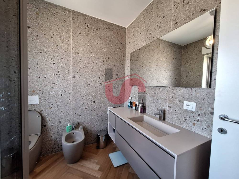 L'immobile viene consegnato con infissi in Alluminio vetrocamera di ultima generazione, sistema di condizionamento ad aria caldo/freddo incassato in controssoffitto con pompa di calore ad alta efficienza, Videocitofono, tapparelle elettriche, allarme, PARQUET spina ungherese, porta blindata, LED, igienici colorati marca cielo, rivestimenti bagno da 280 cm in cherlite, IMPIANTI A NORMA.