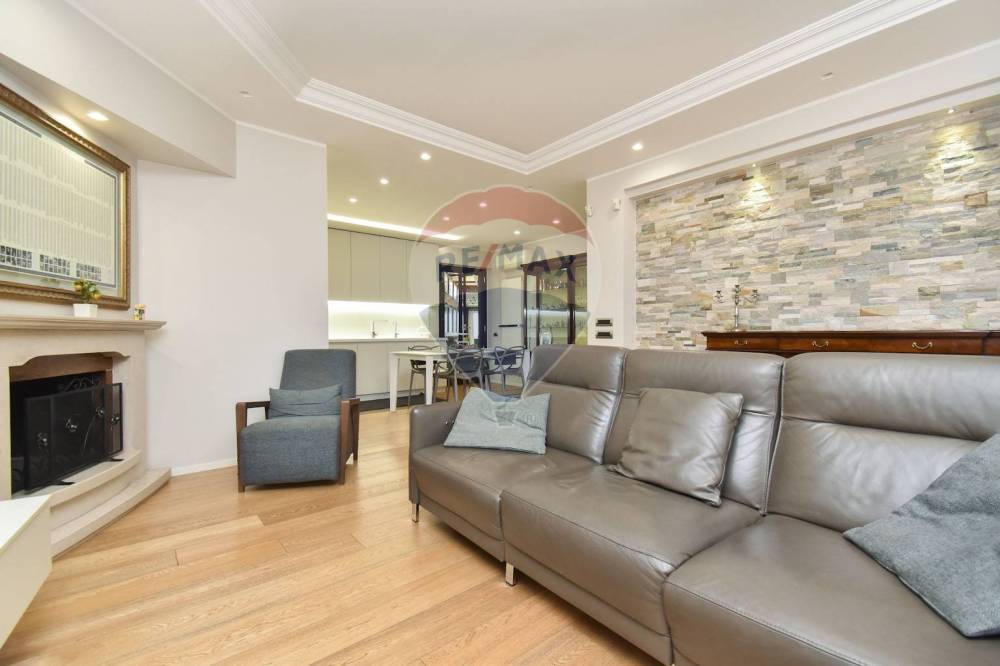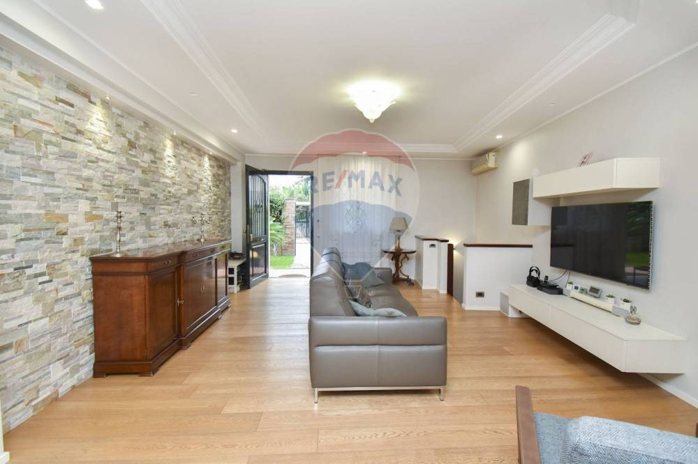 L'accesso dal piano strada è del tutto autonomo tramite un giardinetto di rappresentanza. Appena entrati in casa si è subito in un ambiente living con zona soggiorno dotata di un camino, che rende tutto l'ambiente caldo e accogliente, che si articola a seguire in una zona cucina comoda e moderna. Da qui si diparte un giardino d'inverno che dona luminosità e respiro e dal quale si accede al giardino privato retrostante di coltre 50 mq, un'oasi di tranquillità dove poter trascorrere piacevoli momenti all'aria aperta, grazie anche all'angolo barbecue che lo caratterizza, e dotato di moderni impianti di illuminazione e irrigazione. Dalla cucina si entra anche nella zona notte, composta da un bagno con confortevole vasca con idromassaggio, un'ampia camera matrimoniale, e due camerette. Dal soggiorno, tramite una scala interna, si scende nel locale sottostante, reso luminoso da ampi pozzi luce, che può essere utilizzata come studio o come quarta camera da letto, essendo servito da un bagno con box doccia e da un ripostiglio.