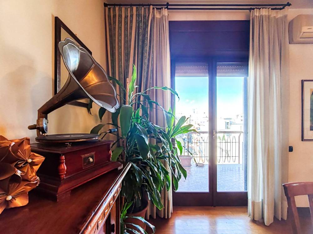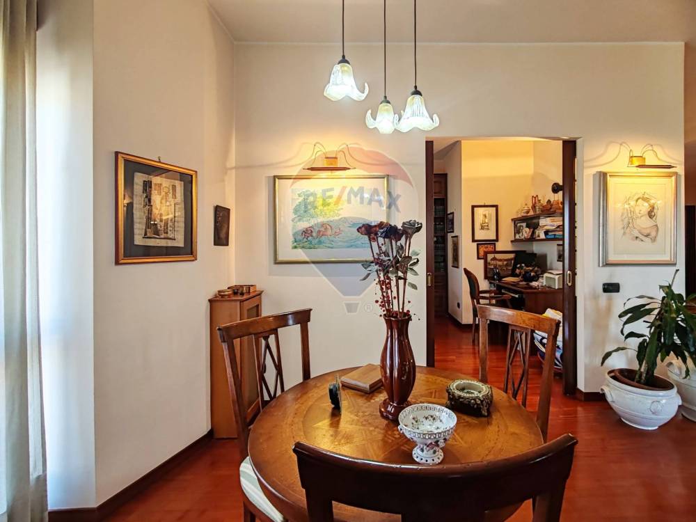 L'appartamento è composto da salone triplo con camino, 3 camere da letto, stanza studio, cucina abitabile con tinello, tre bagni e funzionali ripostigli.