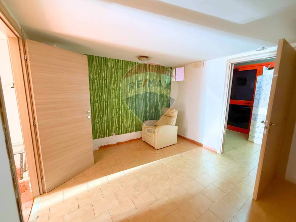 Nonostante si parli di un pian terreno, il bagno ha il suo punto luce. Nel ripostiglio è presente il secondo ingresso della casa su Via Dattoli.