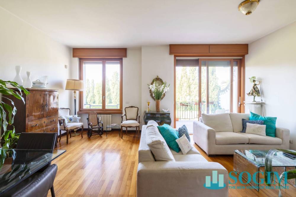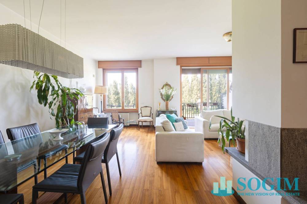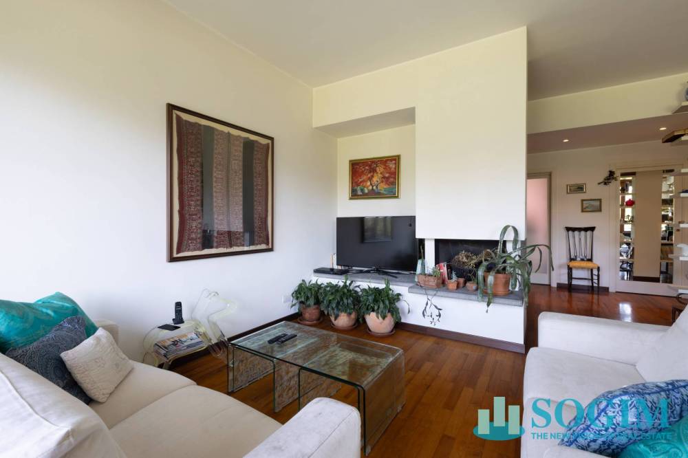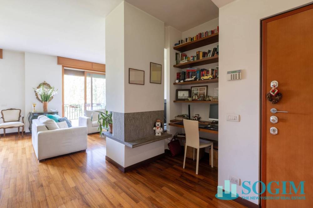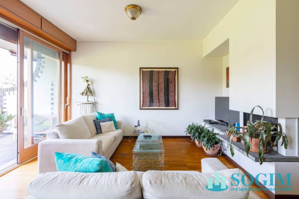 Varcando la soglia, si viene accolti da un grande soggiorno che, grazie alle ampie finestre e allaccesso diretto alla terrazza, regala una splendida luce naturale durante tutto il giorno. La vista è aperta e verde, e trasmette fin da subito una sensazione di tranquillità e riservatezza.