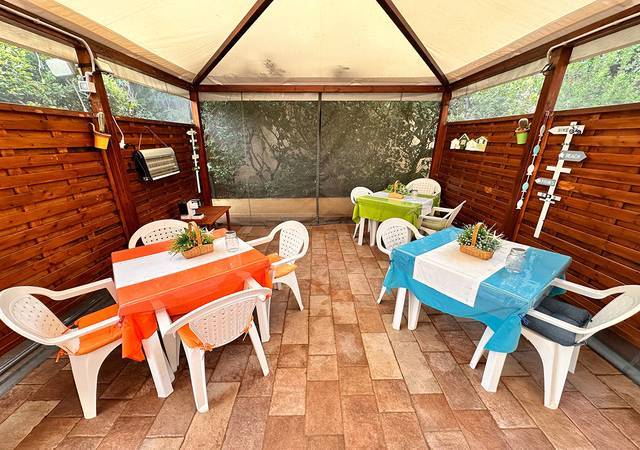 La proprietà gode di una corte privata esterna, ideale per allestire una zona pranzo allaperto dove gli ospiti possono colazionare, pranzare o cenare godendosi il clima mite e latmosfera rilassata della Sardegna.