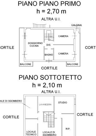 - al piano primo (secondo fuori terra): un luminoso soggiorno, una camera, una cucina, un bagno, un disimpegno, un ripostiglio e due balconi;