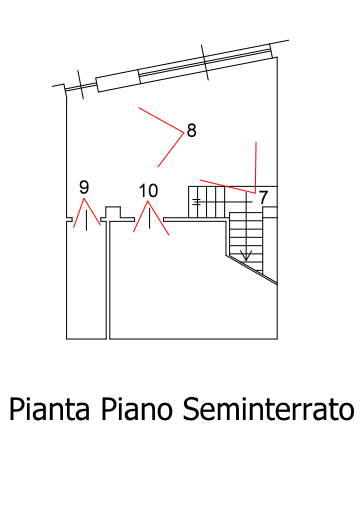 Piano Seminterrato: locale con destinazione urbanistica a laboratorio, completo di deposito e ufficio, per una superficie lorda complessiva di circa 50 mq, incluse le scale di accesso.