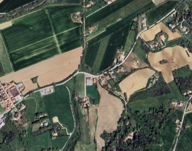 edificio adibito a stalla (ex fienile) di mq 392,in fine dei terreni di una superficie di 9025 mq.