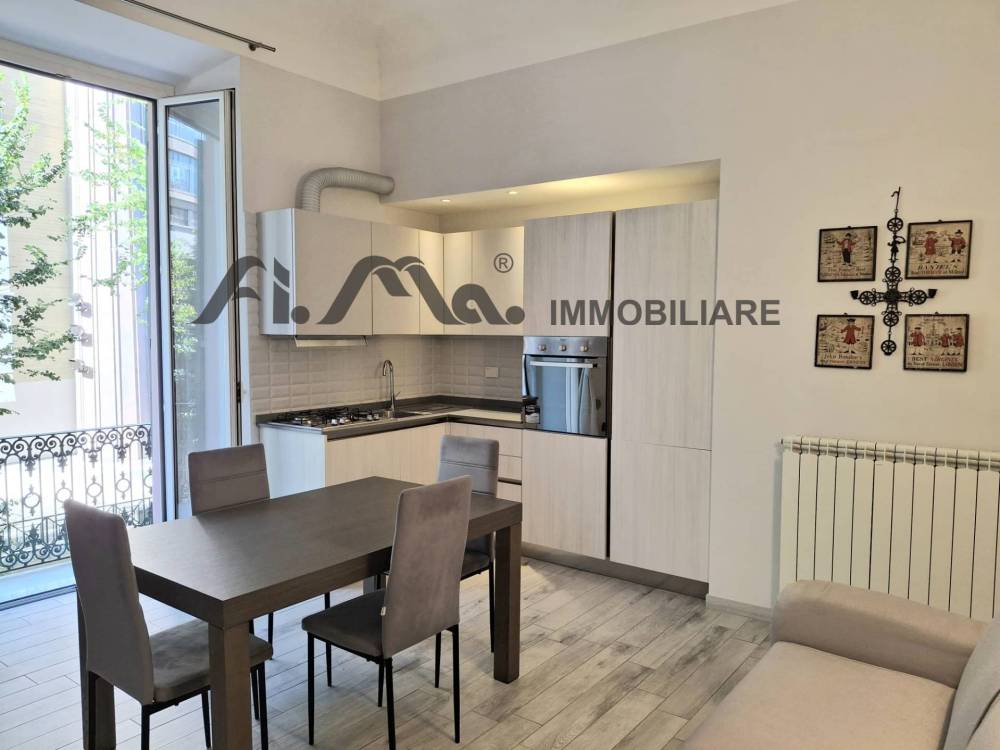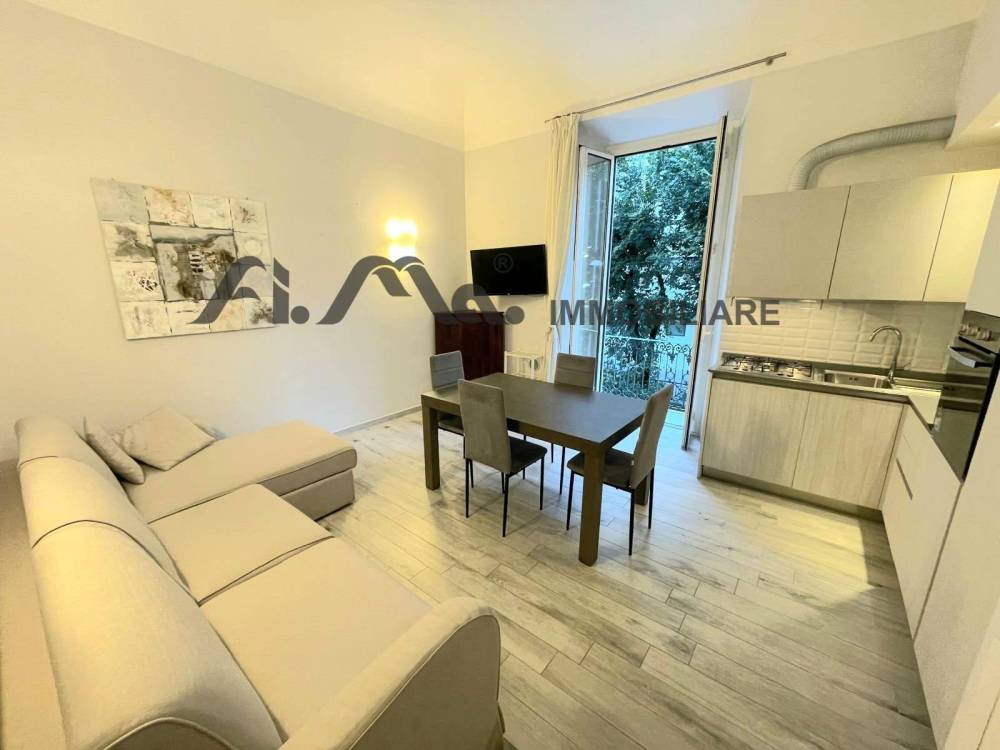 La soluzione proposta di circa 58 mq, è posta al secondo piano di uno stabile con ascensore, anchesso raffinato con parti comuni rifatte e,più precisamente in via XX Settembre; via strategica perché a pochi passi dal mare, dalla stazione, servita da tutti i mezzi e dotata di ogni servizio.