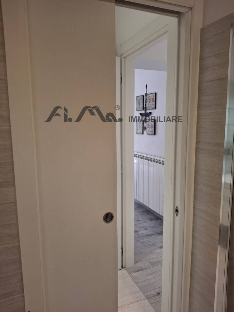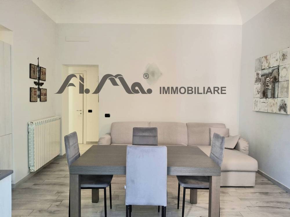 Si compone di soggiorno con cucina a vista e balcone sulla via con piccolo scorcio di mare, una camera da letto matrimoniale, bagno con antibagno e uno spazioso ripostiglio.