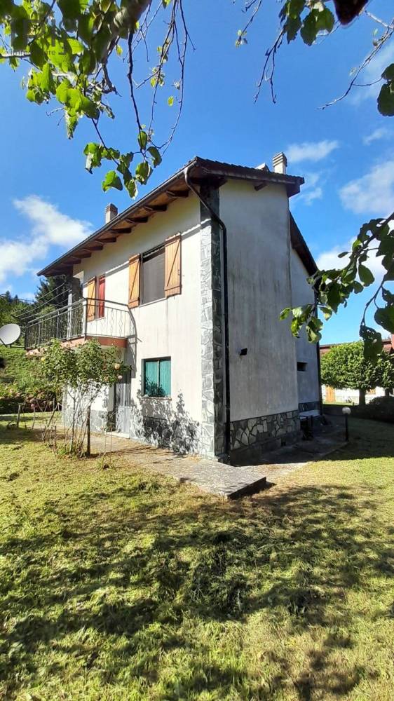 La scala di accesso al piano primo, esterna, conduce all' abitazione costituita da ingresso, cucinino/tinello con caminetto e balcone angolare, 2 camere da letto, ripostiglio e bagno. Al piano terreno altro ampio locale dove è possibile realizzare una tavernetta con accesso diretto al giardino.