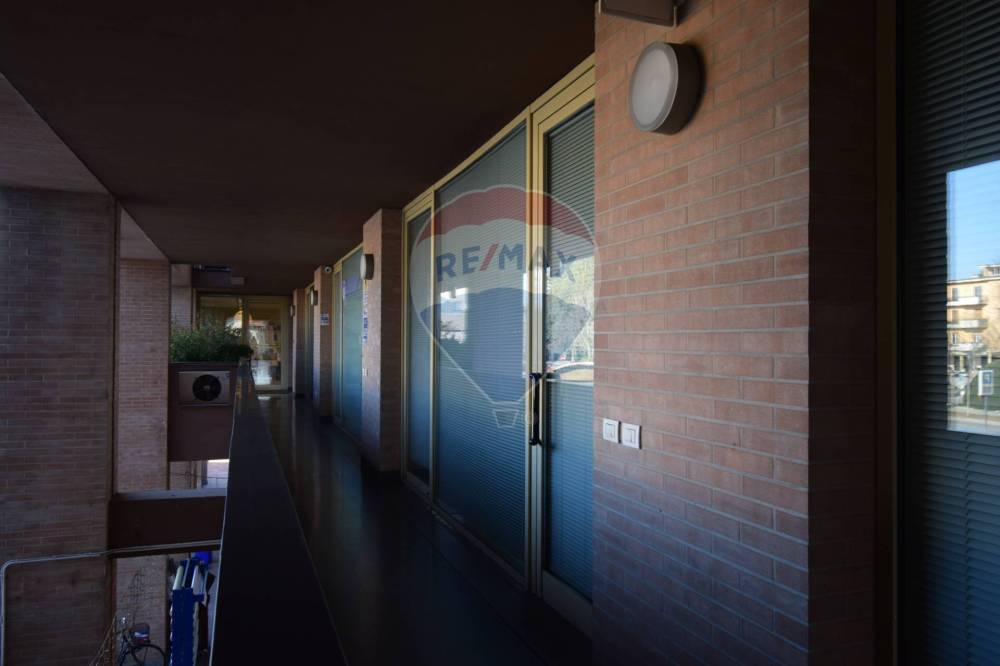 Ingresso su Reception dalla quale si accede ad un primo locale ad uso ufficio e ad un bagno adibito ai clienti già predisposto alla normativa per disabili. Dalla reception si accede poi ad un corridoio che collega tutti gli altri locali presenti nell'ufficio, ovvero un archivio, una stanza deposito, un bagno con anti-bagno per i dipendenti, due locali adibiti ad ufficio e una loggia.
