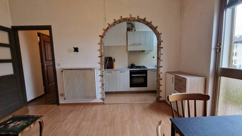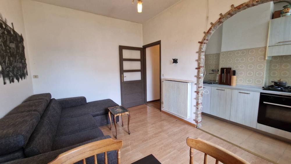 soggiorno con angolo cottura open space con affaccio sul terrazzo