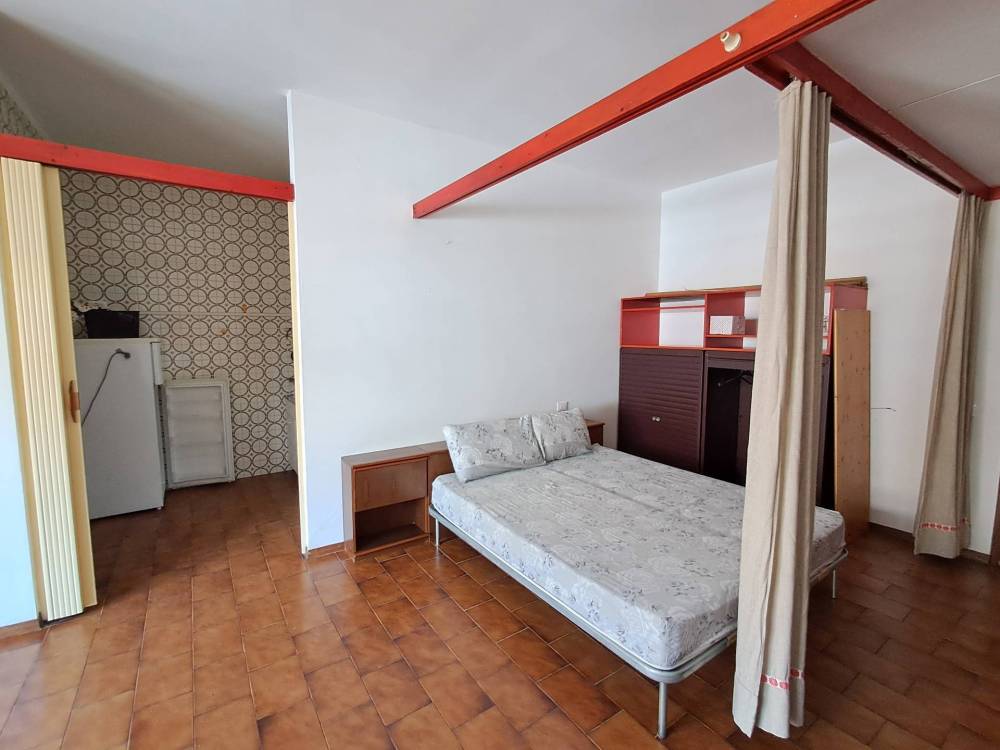 ingresso, soggiorno con balcone, zona camera letto, cucinotto, bagno finestrato con vasca doccia.