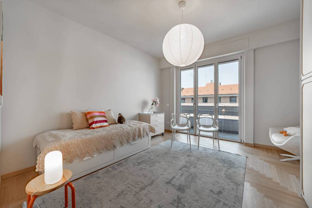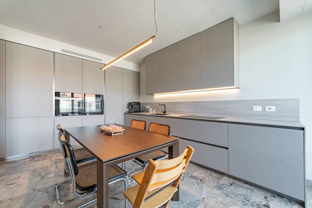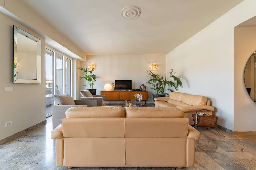 L'immobile proposto è all'ottavo e ultimo piano, internamente l'appartamento, ispirato all'estetica di Frank Lloyd Wright, è sviluppato su un unico piano e presenta una disposizione degli spazi ottimale. Progettato da un'interior designer, è caratterizzato da materiali scelti secondo i principi del "Vastu" e offre un ambiente caldo e accogliente. Si compone di tre camere, tre bagni, due cucine e un ampio balcone. La sicurezza è garantita da porte e galleria chiusa, con un servizio di portineria attivo durante il giorno. La ristrutturazione, realizzata da Tea Costruzione e Design, utilizza materiali di pregio provenienti da uno showroom storico. L'immobile è in classe energetica C, dotato di impianti separati, aria condizionata, pavimenti in parquet di rovere e illuminazione di design. La cucina è firmata Arrital con elettrodomestici Miele e Smeg. La casa è venduta arredata, con possibilità di concordare i mobili da mantenere.