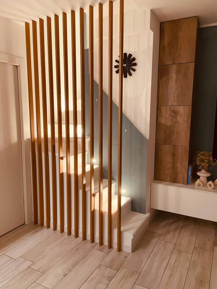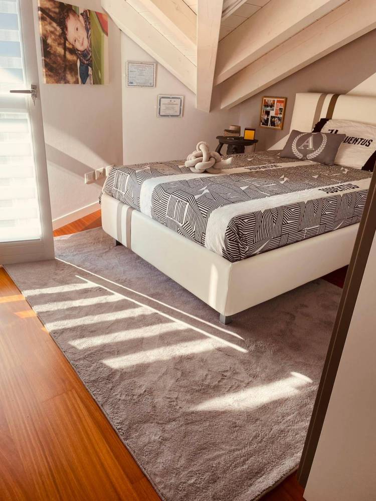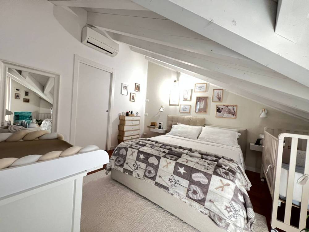 Una scala interna conduce al piano superiore mansardato, dove si sviluppa la zona notte, composta da due camere da letto e da un secondo bagno. Entrambe le camere godono dellaccesso diretto a un balcone comune, che conferisce ulteriore luminosità e comfort.