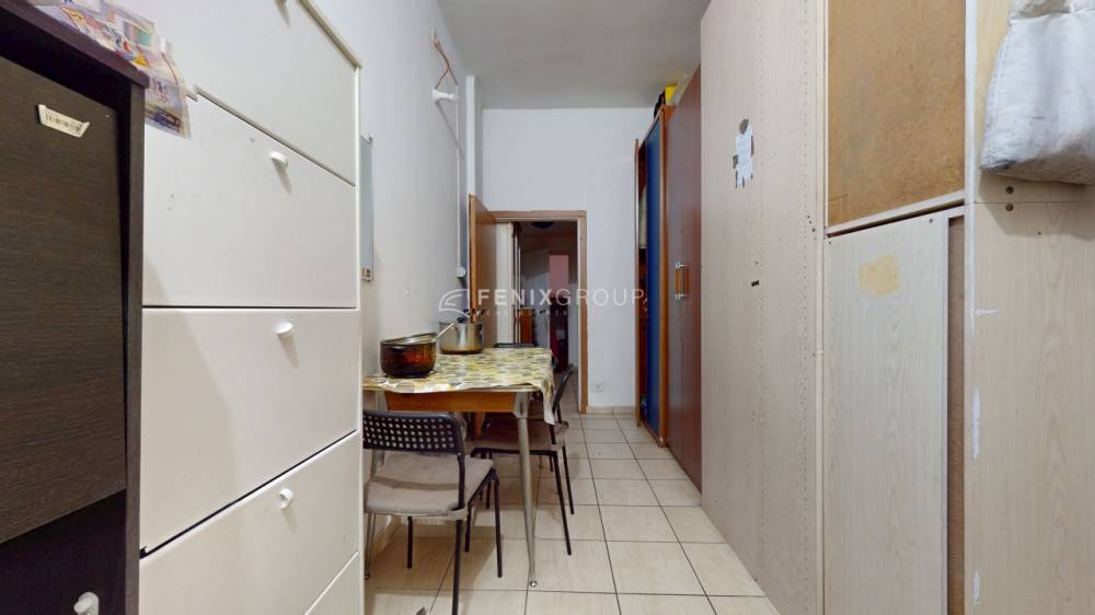 L’ingresso si apre su una prima stanza adibita a soggiorno, seguita da un disimpegno che conduce agli altri ambienti della casa: una cucina separata, il bagno finestrato e, in fondo, la camera da letto. Tutti i locali sono dotati di finestre, rendendo l’abitazione luminosa e ben arieggiata durante l’arco della giornata.