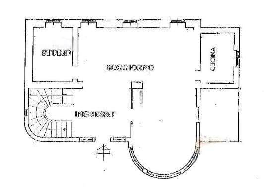 L'abitazione si compone di un ampio ingresso con scala di collegamento per il piano superiore, un salone con camino, un salotto, una cucina ed uno studio.