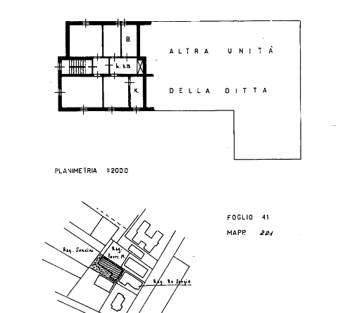 Complesso industriale di 3430 mq, ufficio 90 mq, appartamenti 260 mq e cantine 35 mq, appartamento 110 mq, box auto 24 mq,sedime/area pert. 2052 mq.
