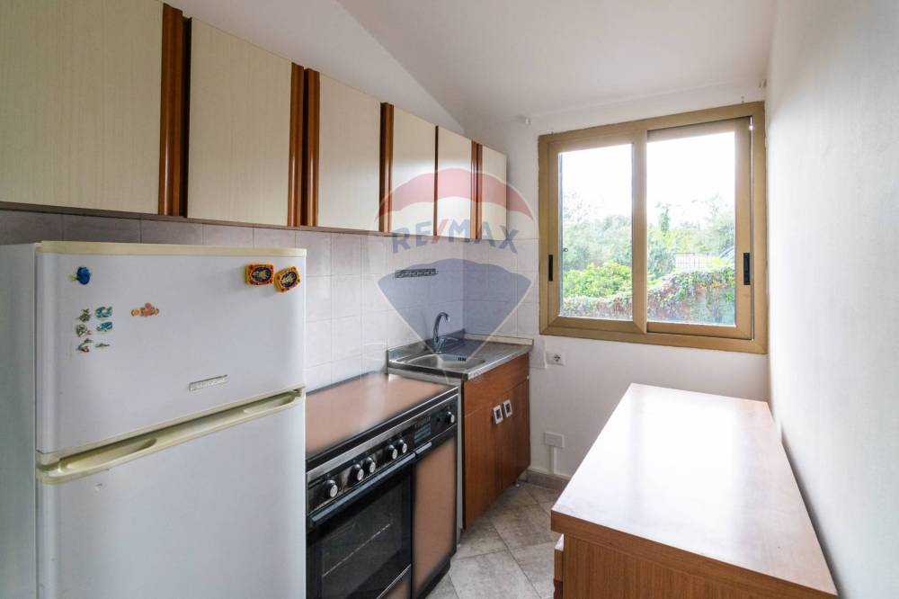 La cucina è a vista, perfetta per chi ama cucinare e socializzare allo stesso tempo.