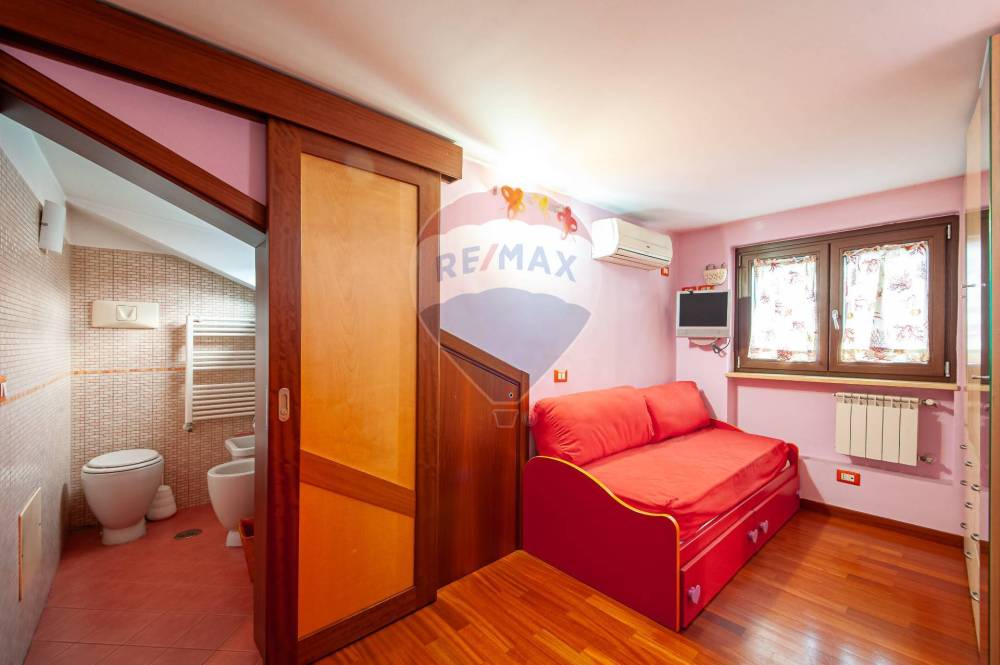La zona notte, al secondo piano, offre una camera matrimoniale, una cameretta, ambedue dotate di bagno in camera, e funzionali ripostigli, garantendo spazi intimi e confortevoli.