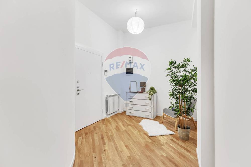 Le finiture di pregio includono parquet in rovere in tutto lappartamento, ad eccezione dei bagni, infissi con triplo vetro ad alto isolamento, tapparelle elettriche e predisposizione per limpianto di condizionamento. La rubinetteria dei bagni è Frattini. Il riscaldamento è centralizzato con contabilizzazione autonoma.
