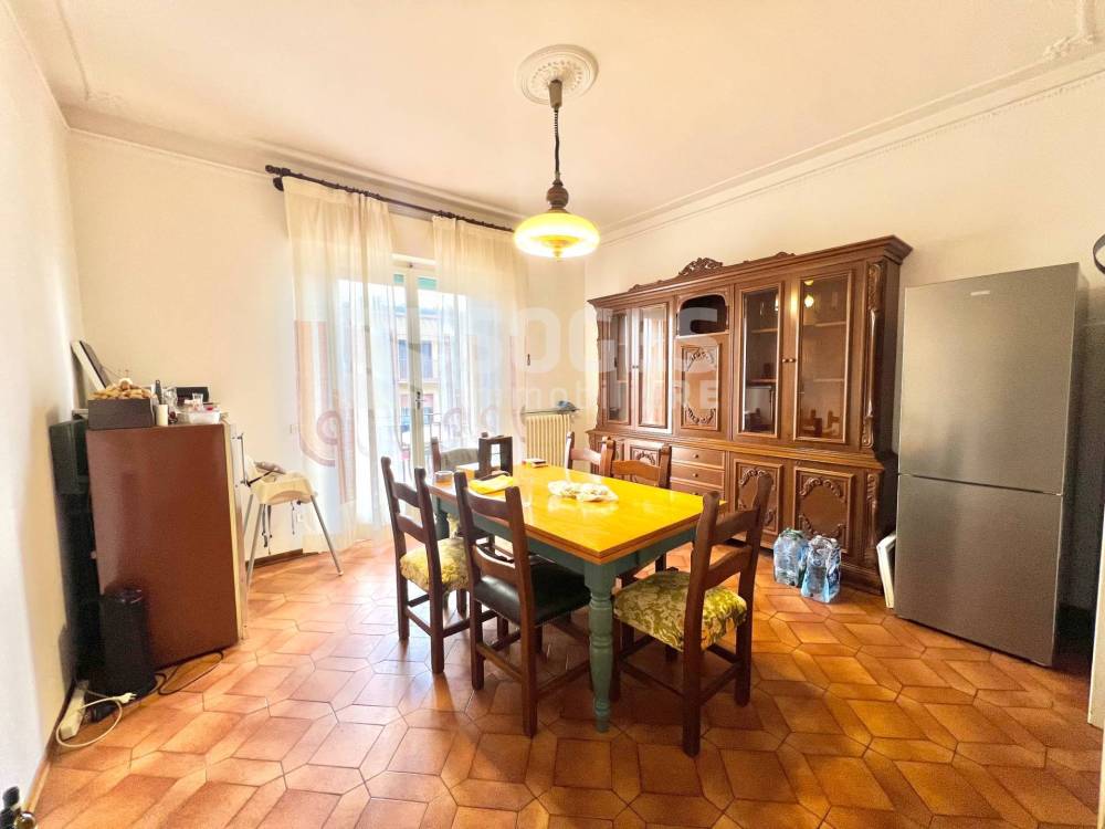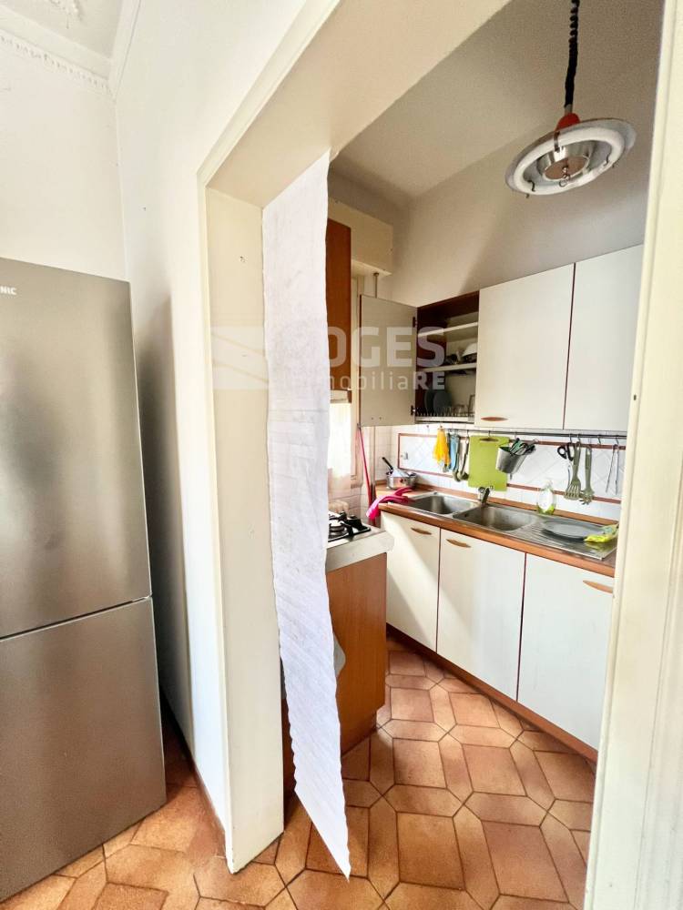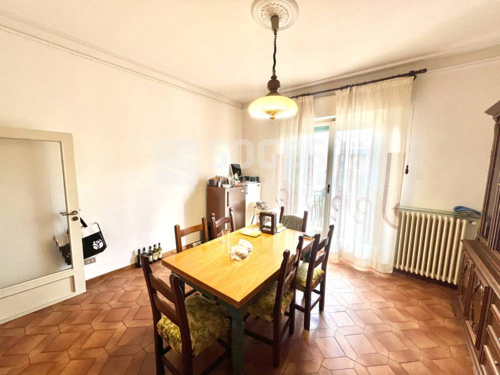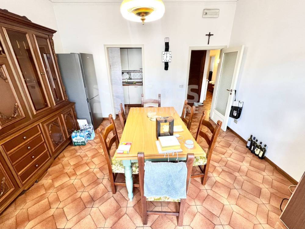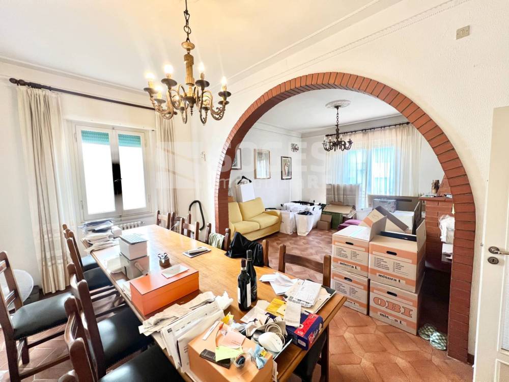 L'appartamento, di circa 135 mq (6 vani), è così composto: ingresso che da sul grosso disimpegno. Zona giorno molto spaziosa e luminosa con caratteristica arcata e camino, con accesso ad una terrazza. Cucina abitabile con tinello e ulteriore accesso alla seconda terrazza. Tre camere da letto (due matrimoniali ed una singola). ed infine un bagno finestrato con vasca.