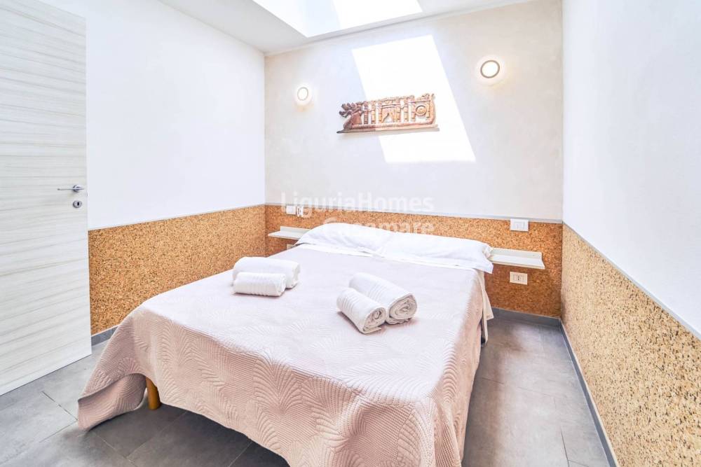 A breve distanza dalle spiagge e dal centro di Santo Stefano al Mare, vendita in esclusiva di luminoso appartamento con grazioso giardino e favolosa vista mare all'interno di un piccolo complesso residenziale dotato di piscina, area spa e posto auto privato.