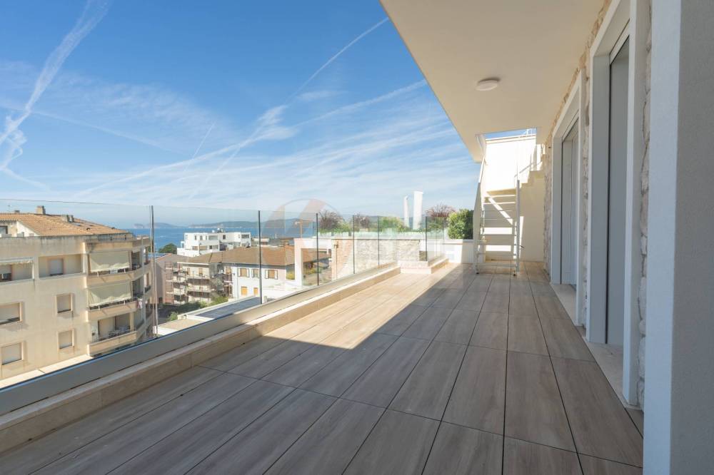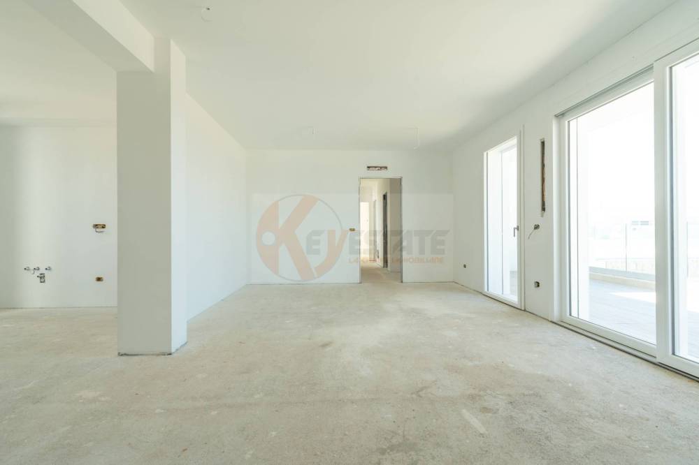 La zona giorno ti accoglie in un ambiente luminoso e ben distribuito, dove la sala si distingue con eleganza dalla cucina, mantenendo però un dialogo continuo con lesterno. La grande vetrata scorrevole ti guida verso un terrazzo abitabile, perfetto per i tuoi momenti allaria aperta. Da qui, una scala comoda conduce al piano superiore: una terrazza privata di oltre 40 mq con una vista mare da togliere il fiato.