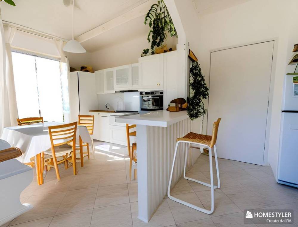 Lappartamento gode di doppia esposizione e offre una piacevole vista aperta con scorcio mare, particolarmente apprezzabile dalla balconata del soggiorno.