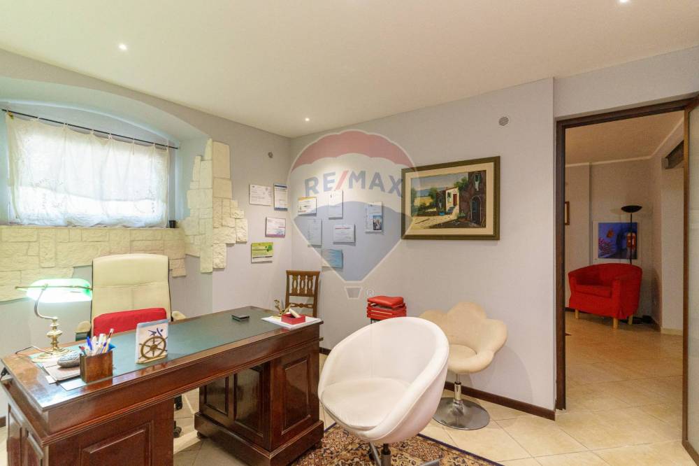 Attualmente ospita uno studio medico, articolato in due ampie sale adibite a reception e sala dattesa, due ambienti destinati a studio privato, un servizio completo, con antibagno, doppia finestra e un ampio ripostiglio, facilmente trasformabile in un secondo servizio o in un pratico cucinino.