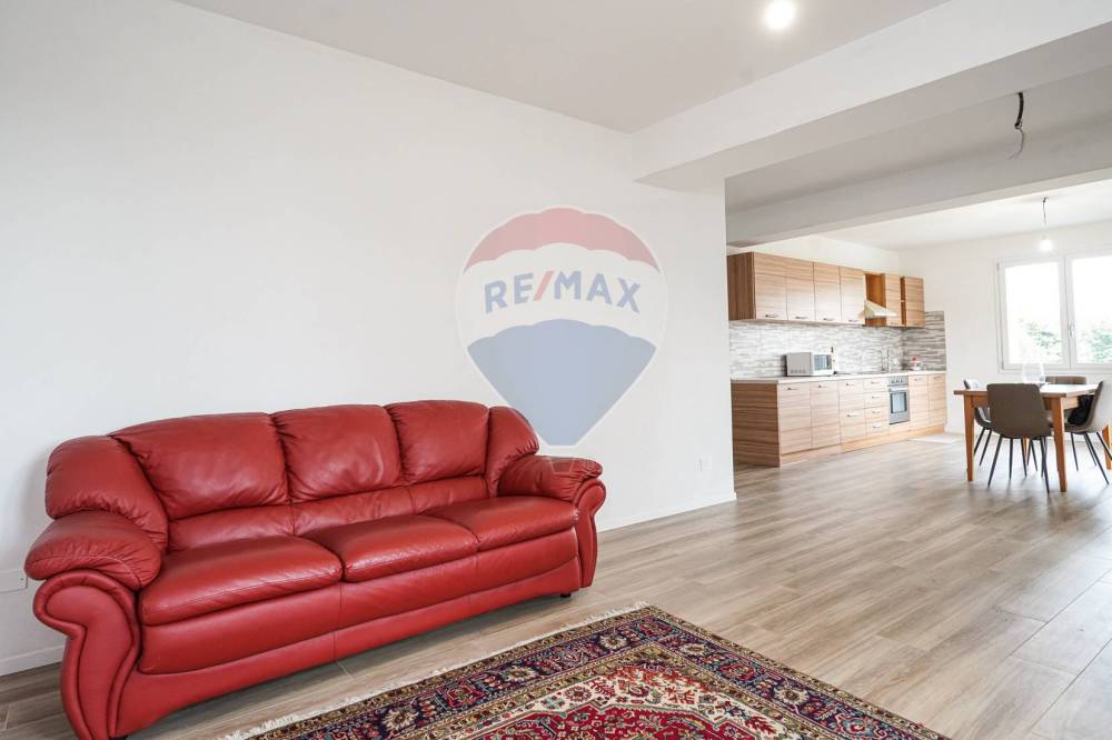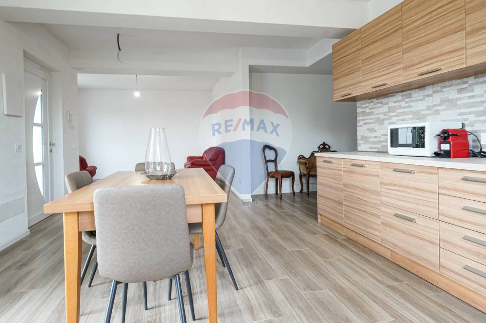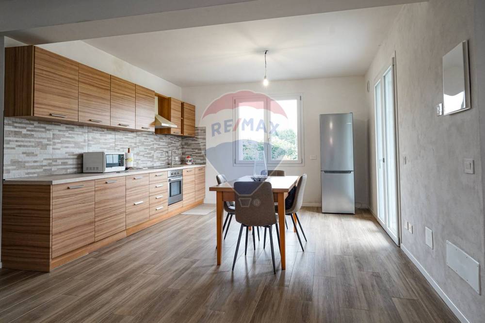 Soggiorno e cucina in open space con uscita su un terrazzo panoramico ideale per pranzi e cene allaperto.