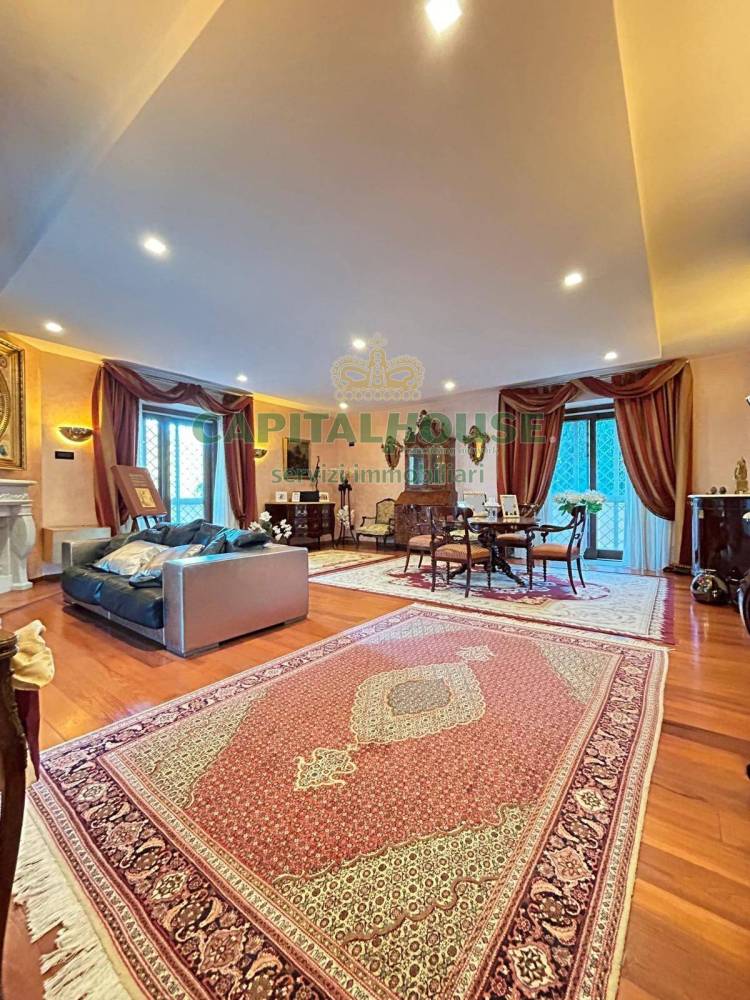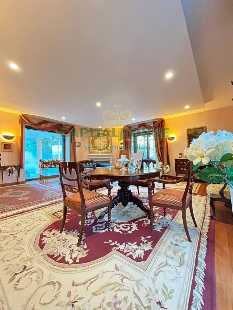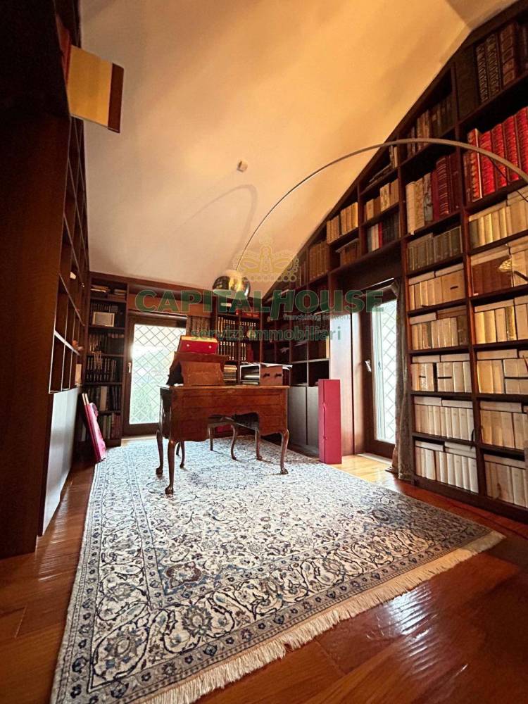 E' composta da 9 vani di cui 6 luminose camere da letto, un ampio salone con camino, una comoda cabina armadio, una zona adibita a palestra, una bellissima dépendance con camino e forno a legna con accesso diretto al giardino dove passare momenti piacevoli in famiglia o di relax puro, 2 cucine, 5 WC ognuno con delle caratteristiche diverse e una bellissima libreria.