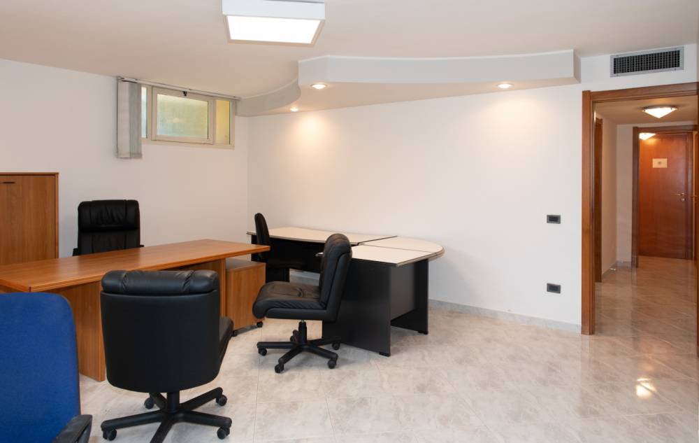 Ufficio ampio e luminoso sito al piano seminterrato di un ottimo condominio ristrutturato recentemente. Si tratta di un ampio pentavano ed è composto da: ingresso su ampia sala attesa, andito dove conduce a due comode stanze operative e una bella sala riunioni. Poi, da altro disimpegno accediamo ad un'altra stanza operativa ed al bagno completo. L'ufficio si presenta bene in buone condizioni e si può dire anche pronto all'utilizzo, è dotato di impianto di illumnazione, condizionatore canalizzato autonomo. Si arriva al piano dell'ufficio anche con l'ascensore.