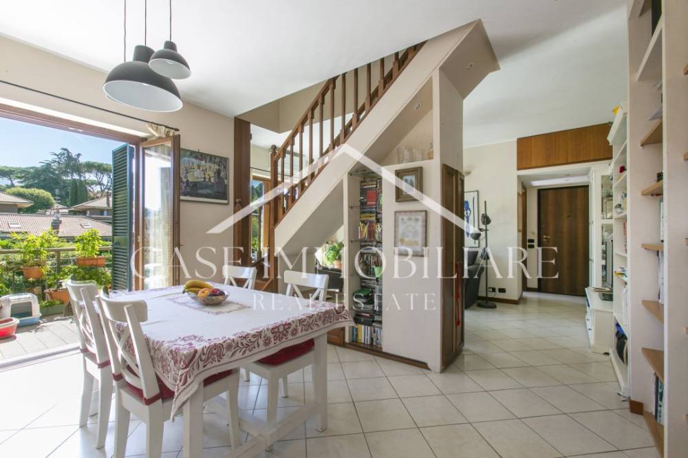 La CASE Immobiliare propone in VENDITA SPLENDIDO APPARTAMENTO SU DUE LIVELLI CON TERRAZZO PANORAMICO una soluzione abitativa davvero esclusiva nel cuore di Grottaferrata, in via San Michele, una delle zone residenziali più ricercate e tranquille dei Castelli Romani. Questa proprietà rappresenta il perfetto equilibrio tra comfort, funzionalità e qualità della vita, ideale per chi desidera vivere in un contesto sereno ma senza rinunciare alla vicinanza con tutti i servizi essenziali, via San Michele si trova in una posizione strategica che permette di godere della tranquillità residenziale tipica di Grottaferrata, mantenendo un accesso immediato a tutto ciò che serve per la vita quotidiana. A pochi passi dall'appartamento troverete supermercati, farmacie, banche e una vasta gamma di negozi e attività commerciali.nParticolarmente interessante per le famiglie è la vicinanza alla Scuola Internazionale di Grottaferrata, facilmente raggiungibile, che rende questa soluzione perfetta per chi ha figli e cerca un'istruzione di qualità. La zona è inoltre ben servita da scuole di ogni ordine e grado.nPer chi si sposta quotidianamente verso Roma, i collegamenti sono ottimi: la stazione ferroviaria della linea Roma-Giardinetti dista pochi minuti, così come le fermate degli autobus che collegano rapidamente con la Capitale. L'accesso alla via Anagnina è comodo e veloce, permettendo di raggiungere il centro di Roma in tempi contenuti.nNon dimentichiamo la bellezza naturalistica del territorio: il centro storico con la millenaria Abbazia di San Nilo, il Parco Regionale dei Castelli Romani per passeggiate e attività all'aria aperta, e l'eccellente offerta enogastronomica locale sono tutti elementi che arricchiscono la qualità della vita in questa splendida località.nL'appartamento si sviluppa su due livelli, terzo e quarto piano, all'interno di una palazzina in cortina edificata nel 2003, quindi con standard costruttivi moderni e ottime finiture. La superficie complessiva è di 100 mq commerciali, distribuiti in modo intelligente e funzionale.nAl terzo piano troviamo la zona giorno e notte principale: un luminoso salone doppio che insieme alla cucina abitabile si affaccia sul meraviglioso terrazzo panoramico di 18 mq, dal quale si può godere di una vista mozzafiato su Monte Cavo e sul Tuscolo. Questo spazio esterno rappresenta un vero valore aggiunto, perfetto per pranzi e cene all'aperto, momenti di relax o semplicemente per godersi il panorama dei Castelli Romani. Su questo piano si trova anche la camera matrimoniale con bagno privato en-suite, garantendo massima privacy e comfort, oltre a un ulteriore bagno che serve la zona giorno, molto comodo per gli ospiti.nSalendo al quarto piano troviamo una cameretta anch'essa dotata di bagno privato en-suite, ideale per figli adolescenti o ospiti che desiderano la propria indipendenza, e uno studio, perfetto per chi lavora in smart working o ha bisogno di uno spazio dedicato per le proprie attività.nL'immobile è dotato di aria condizionata in tutti gli ambienti, garantendo il massimo comfort in ogni stagione, e le tende da sole proteggono dal sole estivo. L'ottima esposizione assicura luminosità naturale durante tutto il giorno, creando ambienti piacevoli e accoglienti.nUn altro grande punto di forza è rappresentato dalla comodità dei parcheggi: la proprietà include un box auto di 21 mq al piano S1, raggiungibile comodamente con l'ascensore che scende direttamente dal piano abitativo, oltre a un posto auto esterno. Niente più preoccupazioni per trovare parcheggio o per proteggere l'auto dalle intemperie.nQuesta soluzione è perfetta per famiglie che cercano spazi ben distribuiti, privacy grazie ai tre bagni e alle camere indipendenti, e la possibilità di vivere in un contesto residenziale di qualità senza rinunciare ai collegamenti e ai servizi. La presenza dello studio la rende inoltre ideale per professionisti che lavorano da casa.nContattateci per organizzare una visita e scoprire di persona tutte le qualità di questo meraviglioso appartamento!nLe presenti informazioni e planimetrie sono meramente indicative e non costituiscono elementi contrattuali. La nostra agenzia CASE immobiliare in via Tuscania 13, zona Flaminia/Fleming, è a vs disposizione, tel 0689935159 - 3400794567 per assistervi nella VENDITA-AFFITTO di immobili residenziali e commerciali. I nostri servizi: VALUTAZIONE GRATUITA - COMPRAVENDITE - LOCAZIONE - REGISTRAZIONE CONTRATTI E PRELIMINARI - APE (certificazione energetica) - CONSULENZA NOTARILE, LEGALE e TECNICA. - Maggiori Dettagli: Porta blindata