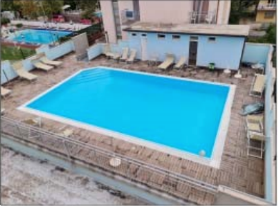 Trattasi di un edificio ad uso alberghiero con piscina e terreno di pertinenza distribuito su quattro piani fuori terra e dependance, distribuita su tre piani più sottotetto.