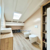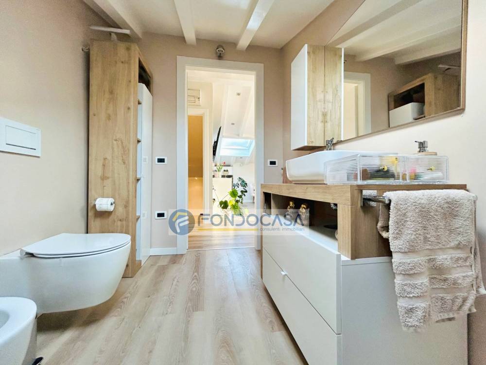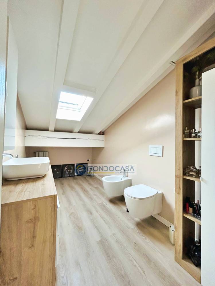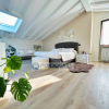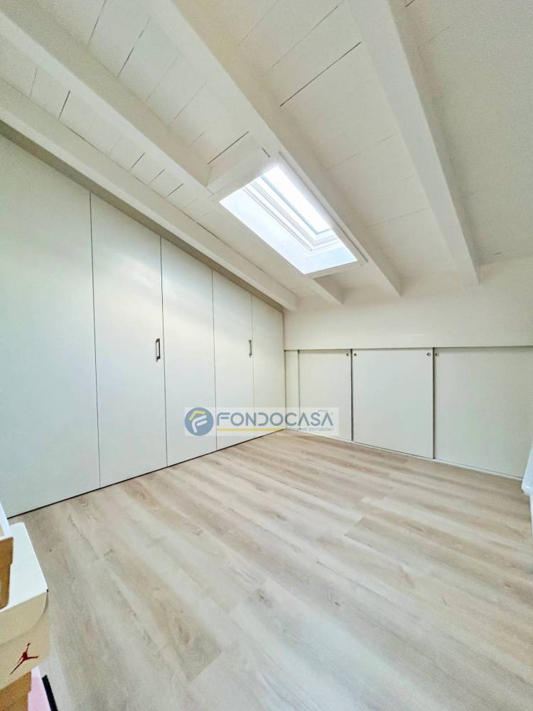 Una scala interna conduce al piano superiore, dove si sviluppa la splendida camera padronale con travi a vista, dotata di guardaroba e bagno dedicato.