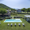 La piscina di 10x6,5 m con affaccio sulla vallata, è uno dei punti di forza del casale dove vivere momenti di convivialità e puro relax.