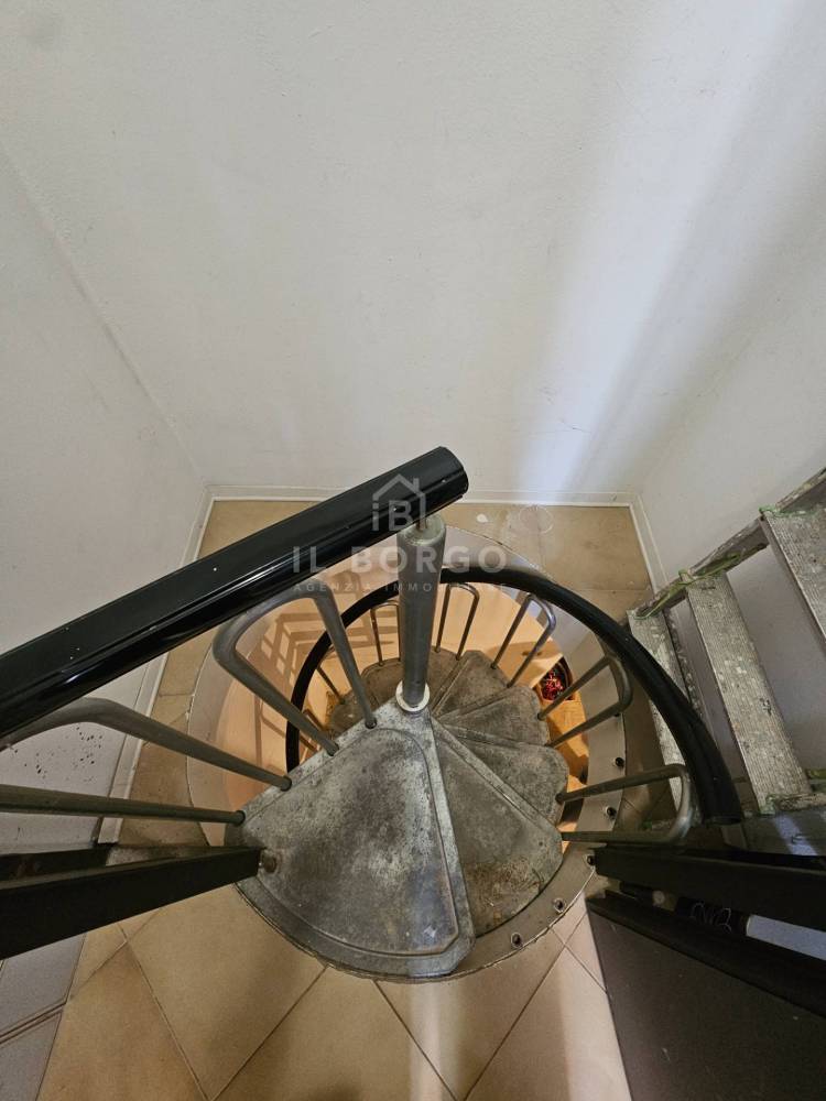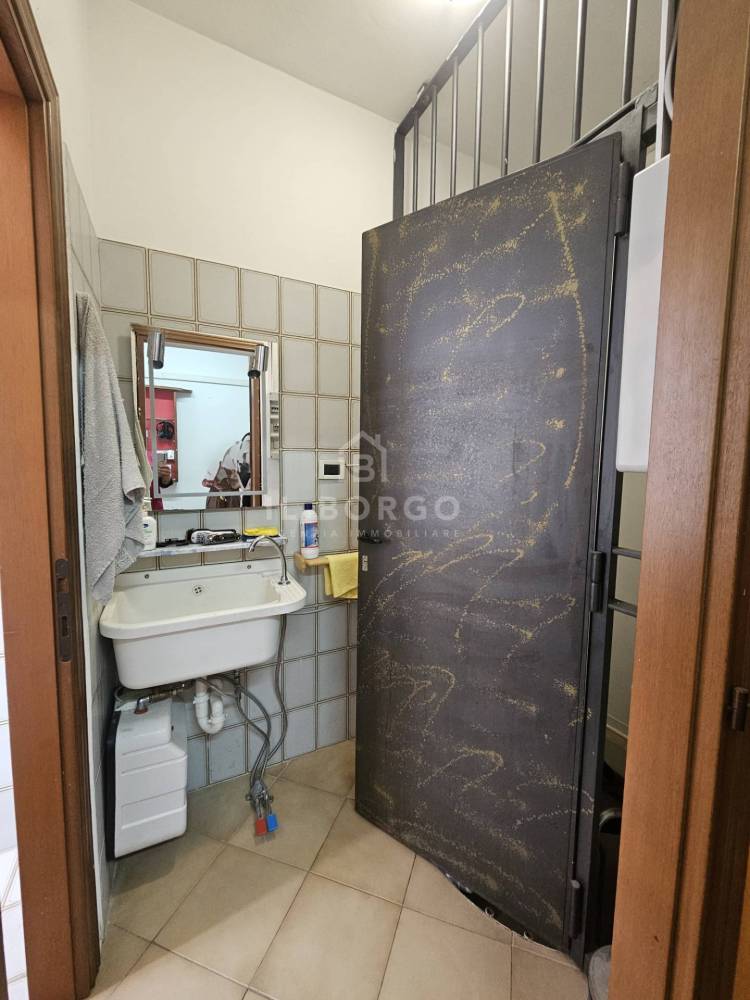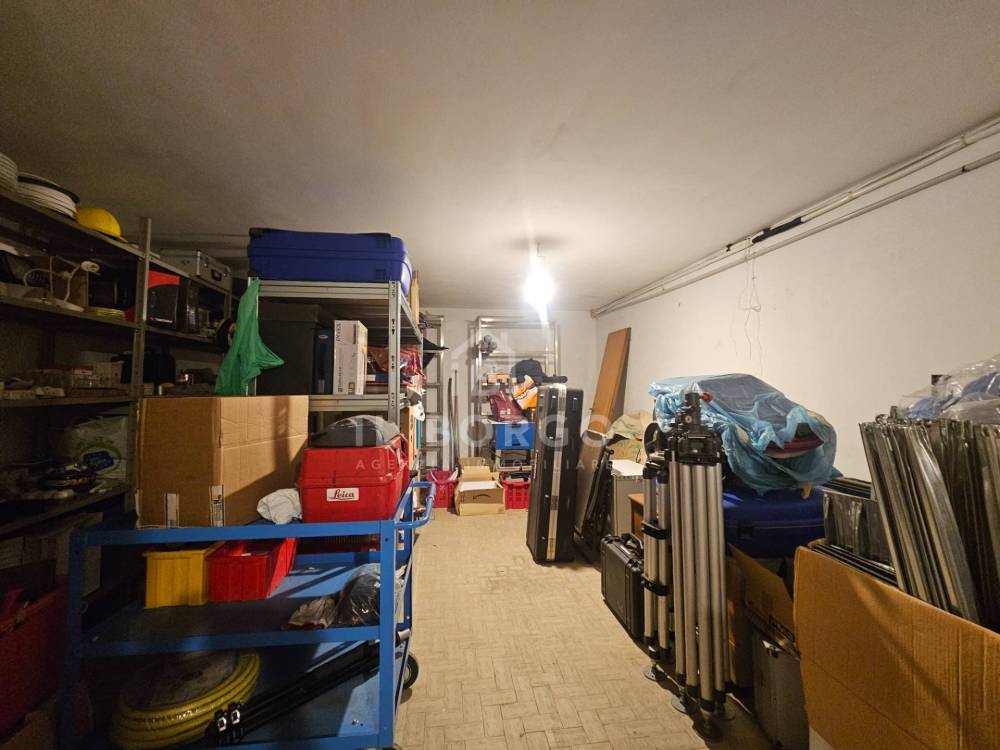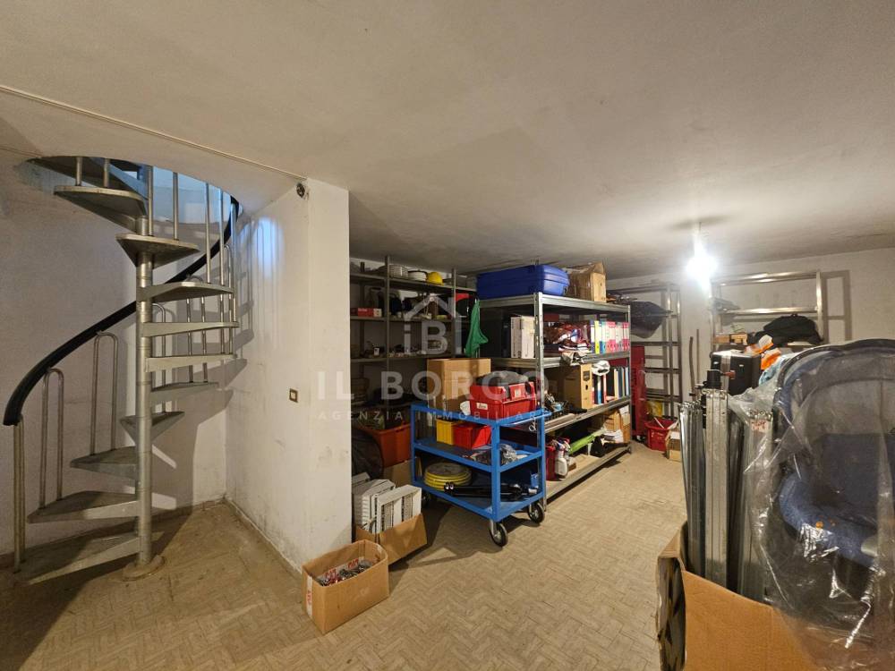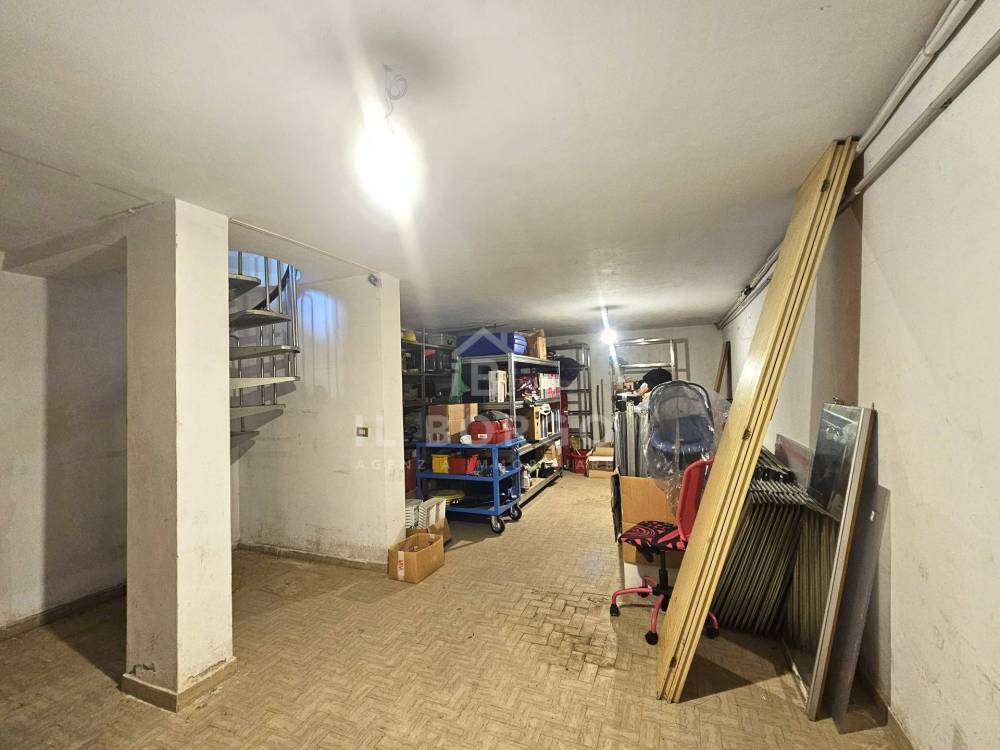 L'ingresso principale accoglie un luminosissimo vano commerciale attualmente adibito ad ufficio, all'interno troviamo un vano magazzino/ripostiglio, antibagno e bagno. Una funzionale scala a chiocciola immette al piano seminterrato dove è possibile raggiungere il garage privato dall'interno, mentre per il passo carrabile è presente dalla strada privata sul retro.