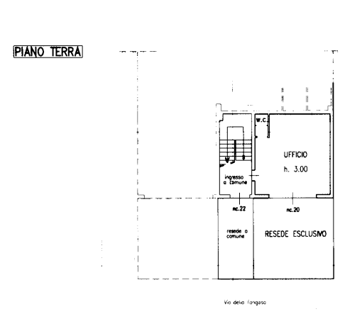 Ufficio con ingresso da resede esclusivo prospiciente pubblica via e vano scala a comune con il condominio di cui fa parte, dotato di piccolo servizio igienico.