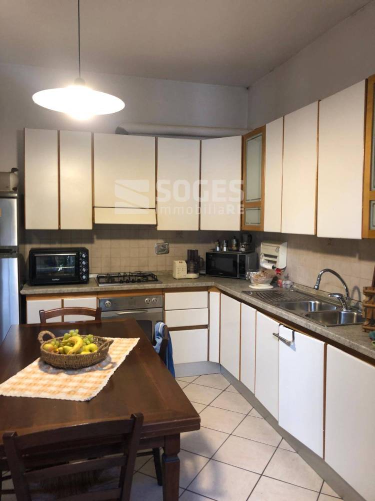 L'appartamento si sviluppa su una superficie totale di 95 metri quadrati e dispone di quattro locali, tra cui una luminosa zona giorno composta da soggiorno e cucina abitabile.