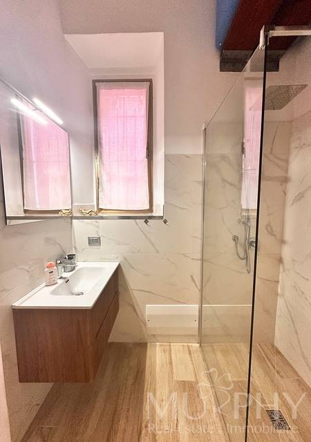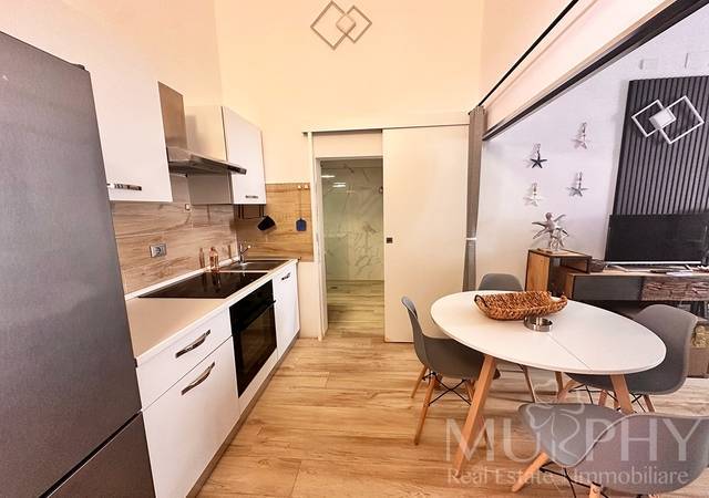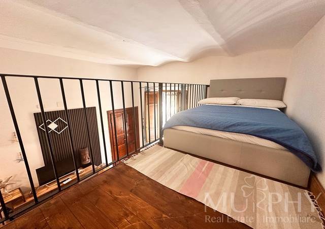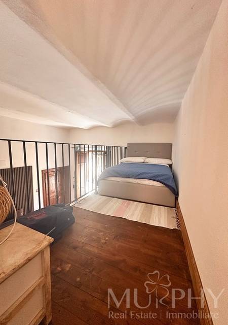 Grazie allaltezza generosa dei soffitti, lambiente ospita un soppalco, accessibile tramite scala fissa, attualmente utilizzato come zona notte con letto matrimoniale , soluzione ideale per ottimizzare lo spazio senza rinunciare al comfort.