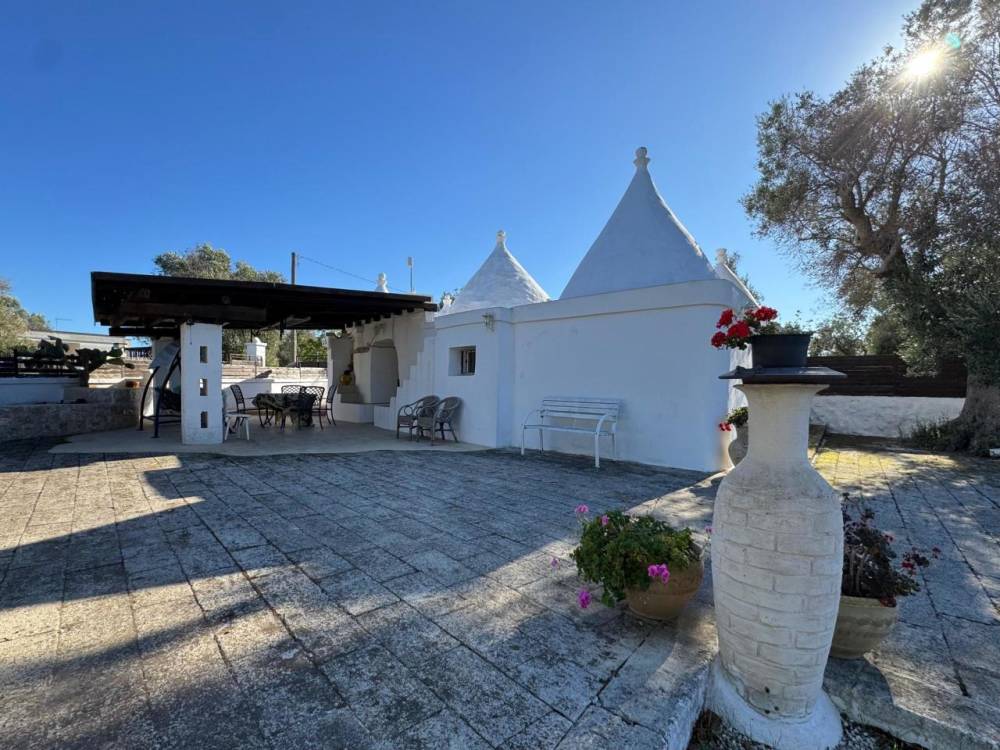 IMMOBILIARE CENTRO STORICO PROPONE IN VENDITA – GRUPPO DI TRULLI CON PISCINA A OSTUNI A soli 2,3 km dal centro di Ostuni, immerso in un contesto di assoluta privacy e silenzio, proponiamo in vendita un affascinante complesso di trulli di circa 100 m², finemente ristrutturato e pronto per essere abitato. La proprietà si compone di due camere da letto, un bagno, cucina attrezzata e zona living, con finiture che esaltano la pietra locale e l’autenticità dell’architettura rurale. All’interno si apprezzano i radiatori in pietra e le eleganti travi in legno a vista, che donano calore e carattere agli ambienti. All’esterno, un’ampia area attrezzata con barbecue e zona conviviale offre lo spazio ideale per cene all’aperto e momenti di relax. Punto di forza è la piscina cubica di 30 m², perfetta per rinfrescarsi nelle calde giornate estive, circondata da circa un ettaro di terreno con ulivi secolari. L’accesso avviene tramite un tratturo privato di circa 100 metri, privo di altre servitù di passaggio, garanzia di assoluta riservatezza e tranquillità. Una proposta unica, ideale per chi cerca una residenza di charme in campagna ma a breve distanza dalla città, perfetta sia come abitazione privata che come investimento per locazioni turistiche di pregio.