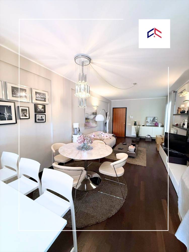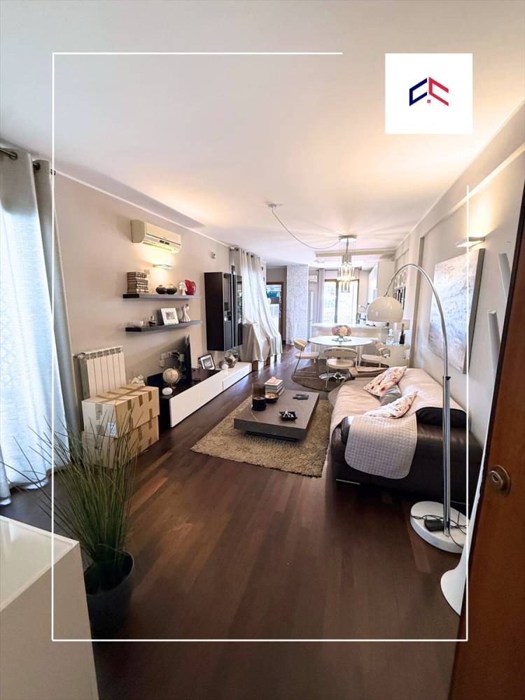 Un'ampio ingresso salone che affaccia su due balconi spaziosi perfetti per momenti di relax, con angolo cottura a vista